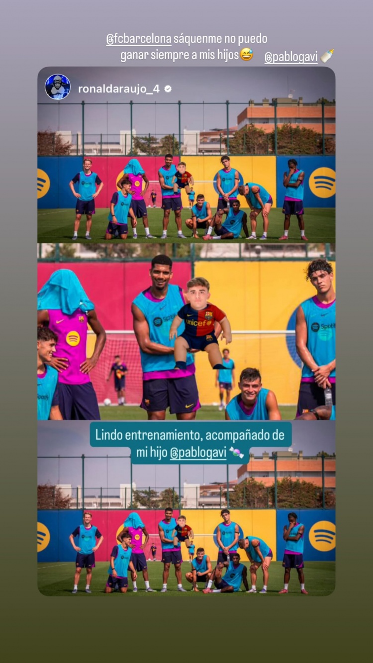 8月13日,巴萨小将亚马尔在社交媒体回应了队友阿劳霍发布的趣味动态。阿劳霍此前在Instagram分享了一张与加维的合影,并配文称其为"儿子"。